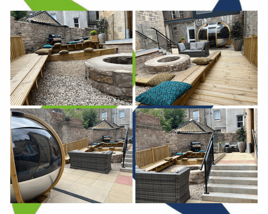 “It has enabled us to erect a beautiful glass seating pod, kindly fundraised for by friends and family in remembrance of Hayley Sutherland, who was a much-loved youth worker at YMCA Tayside.”